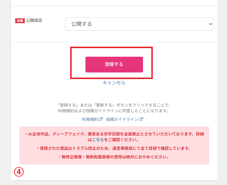 内容に問題がなければ「登録」(編集の場合は「更新」)をクリックする