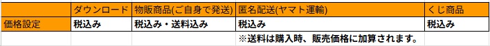 商品価格は、無料もしくは、100円以上100000円以下で設定可能です。